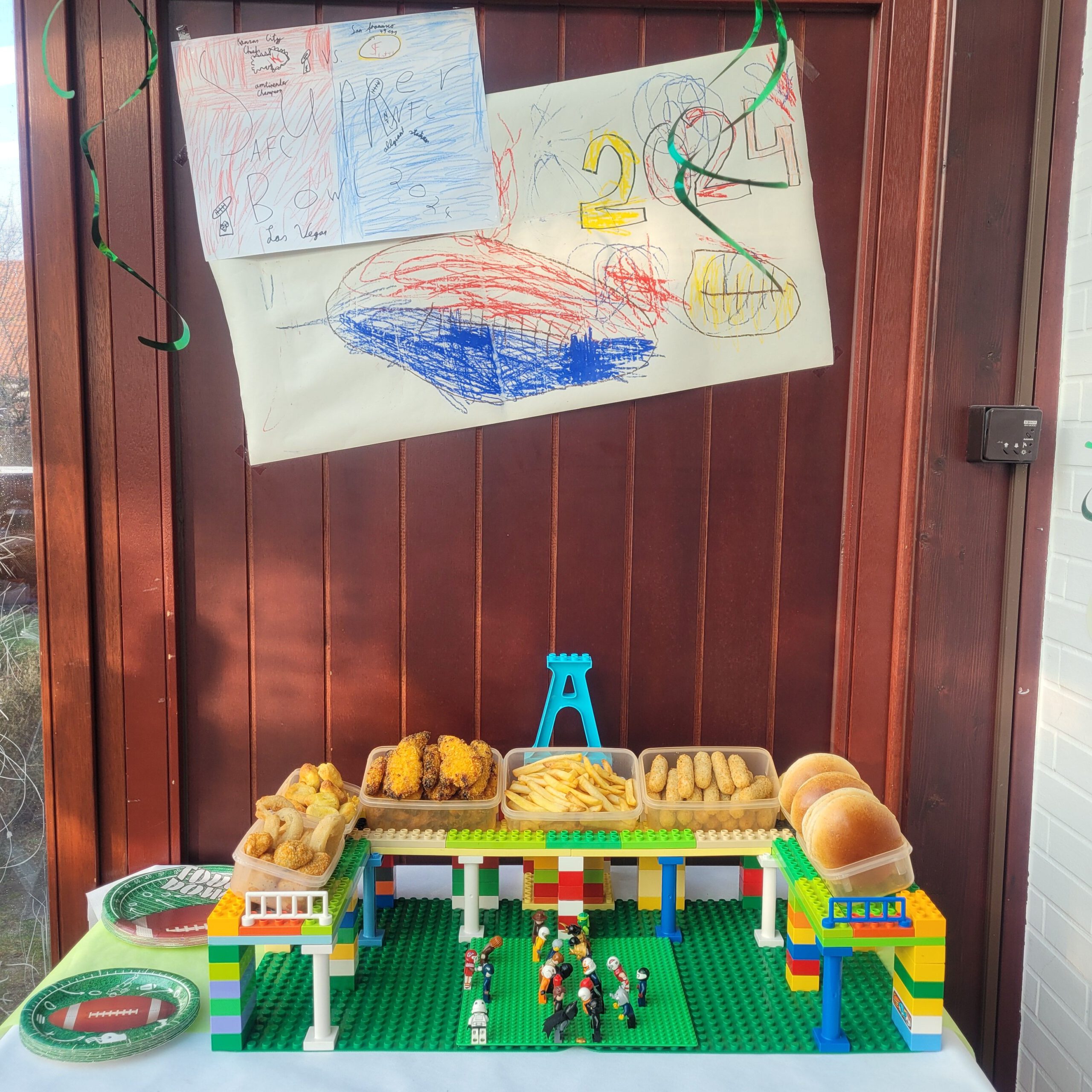 aus Lego gebautes Snack Stadion für Super Bowl Party